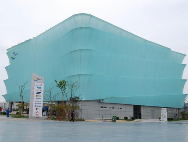 Architectural membrane except itself can be directly used in building the main body, also can be used as exterior wall decoration materials, the dot eyeball building main body appearance modelling and decoration.