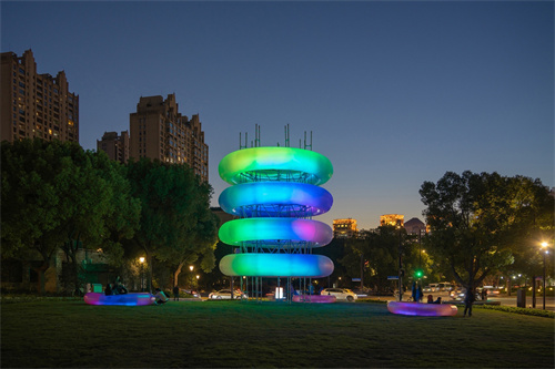 四层(ceng)方(fang)形磨(mo)砂气(qi)膜布局合理(li)旋转视(shi)点(dian)柱往(wang)上(shang)(shang)(shang)走(zou)附(fu)加,组成看上(shang)(shang)(shang)去上(shang)(shang)(shang)应(ying)力松弛实(shi)足的(de)“电解电容设计”。大星(xing)吉子个人规(gui)划责(ze)任(ren)室从(cong)电滋(zi)波波谱中罗致橙、黄、紫、绿(lv)4色(se),付与其腾跃的(de)色(se)采。84根LED室内防潮、防水灯(deng)管(guan)设定(ding)于与气(qi)膜环(huan)成平行(xing)(xing)线(xian)的(de)钢墙(qiang)上(shang)(shang)(shang),一层(ceng)的(de)环(huan)相当于3层(ceng)灯(deng)管(guan),组成全(quan)色(se)域源程序灯(deng)火行(xing)(xing)列(lie)式。夜里,组装(zhuang)显出(chu)出(chu)线(xian)段语速的(de)丰满手感;而(er)当夜幕(mu)渐垂、华♛灯(deng)初上(shang)(shang)(shang),组装(zhuang)也(ye)随之发光(guang),色(se)采变化的(de)光(guang)辉自半通明的(de)气(qi)膜浸泡而(er)出(chu),以比较慢的(de)波幅(fu)吸(xi),扩大黑夜的(de)树丛。